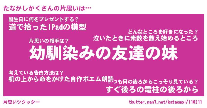 | 男性向けラノベタイトル風あだ名 | 『たなかしかくの憂鬱』 |