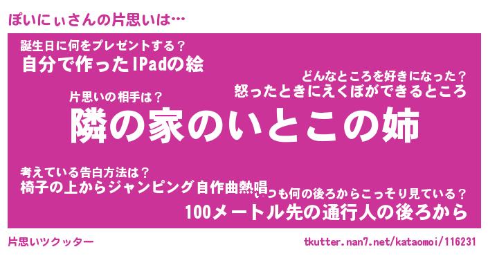 | ヘコむあだ名 | 『ぽいもー』『つくし』『ぽいぷりん』 |