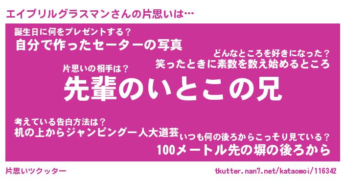 | 胡散臭い通販商品みたいなあだ名 | 『モテモテ間違いなし水晶球…その名も「エイプリルグラスマン」』 |