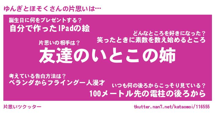 | ヘコむあだ名 | 『ゆんにゅー』『牛乳』『ゆんお』 |