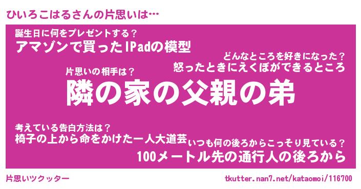 | 胡散臭い通販商品みたいなあだ名 | 『モテモテ間違いなし水晶球…その名も「ひいろこはる」』 |