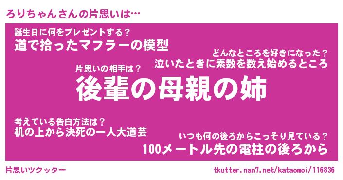 | ヘコむあだ名 | 『ろりにー』『牛乳』『ろりを』 |