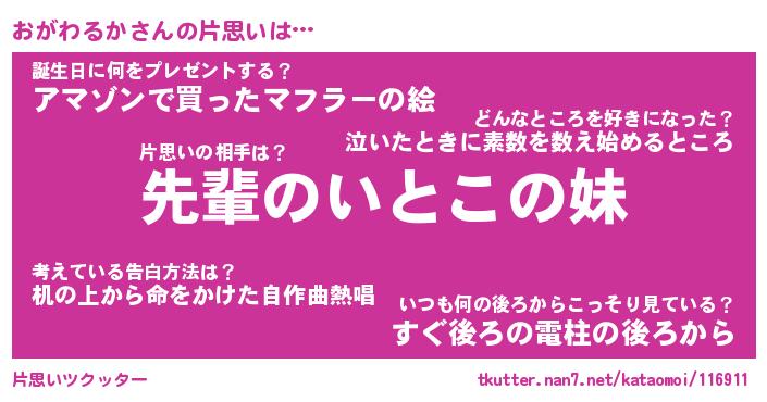 | ヘコむあだ名 | 『おがにゅー』『なまこ酢』『おがを』 |