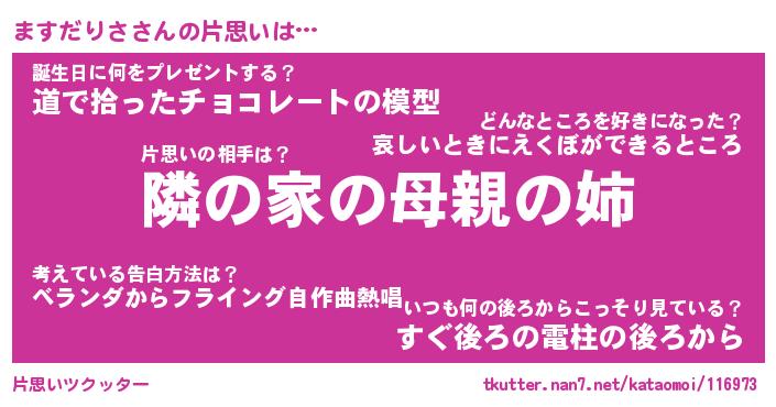 | ヘコむあだ名 | 『ますにー』『豆乳』『ますを』 |