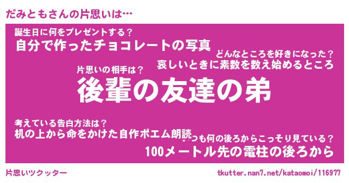 | 意味不明あだ名 | 『ペロリンだみとも』『永久保存だみとも』 |