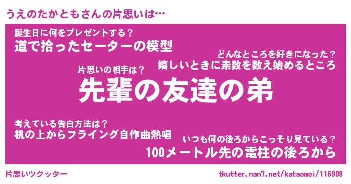 | 胡散臭い通販商品みたいなあだ名 | 『モテモテ間違いなし霊験あらたかなお札…その名も「うえのたかとも」』 |