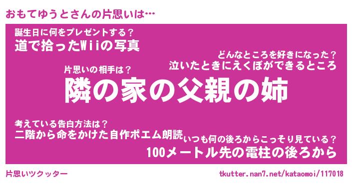 | 胡散臭い通販商品みたいなあだ名 | 『モテモテ間違いなしブレスレット…その名も「おもてゆうと」』 |