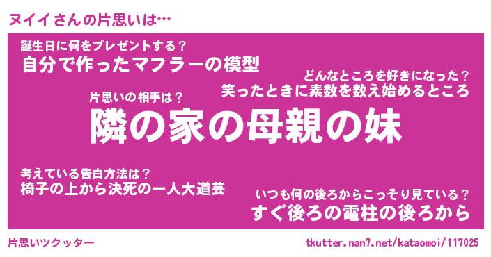 | ヘコむあだ名 | 『ヌイにー』『牛乳』『ヌイを』 |