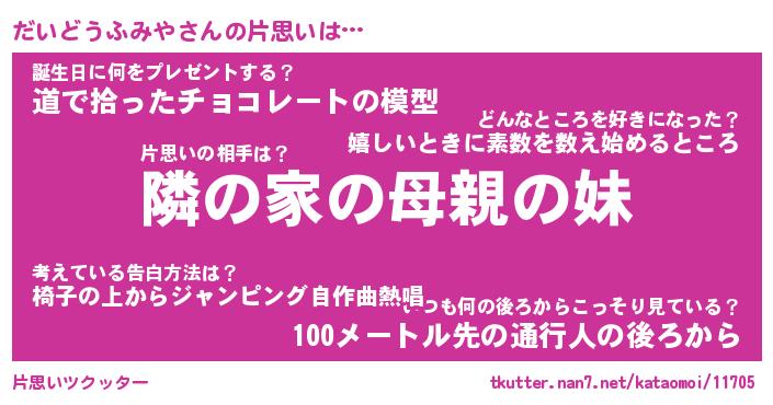| 胡散臭い通販商品みたいなあだ名 | 『必ず成功するブレスレット…その名も「だいどうふみや」』 |