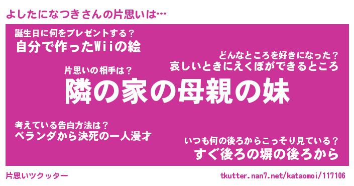 | ヘコむあだ名 | 『よしにー』『つくし』『よしっちょ』 |