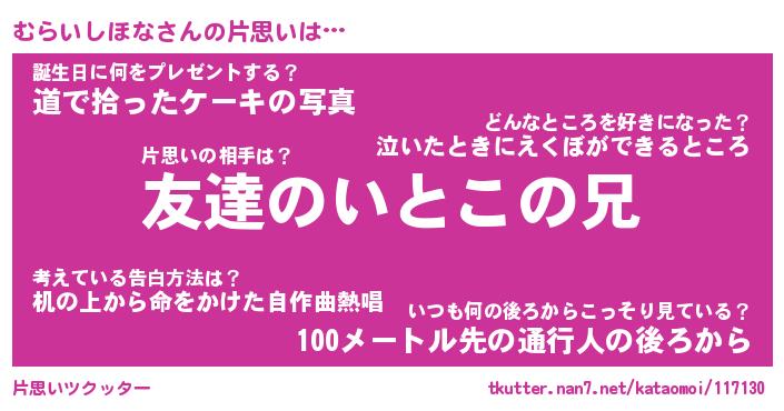 | ヘコむあだ名 | 『むらにゅー』『牛乳』『むらを』 |