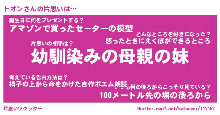 | 男性向けラノベタイトル風あだ名 | 『トオンの憂鬱』 |