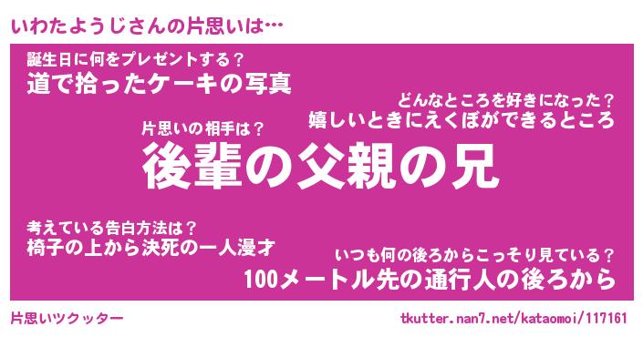 | ヘコむあだ名 | 『いわふぇ~』『つくし』『いわを』 |
