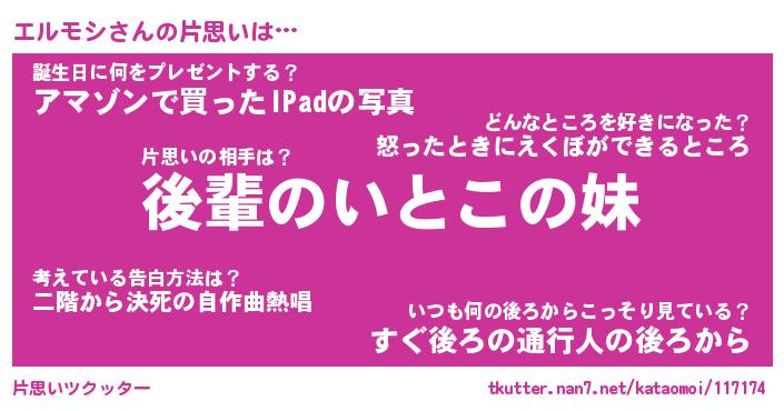 | 意味不明あだ名 | 『ペロリンエルモシ』『永久保存エルモシ』 |