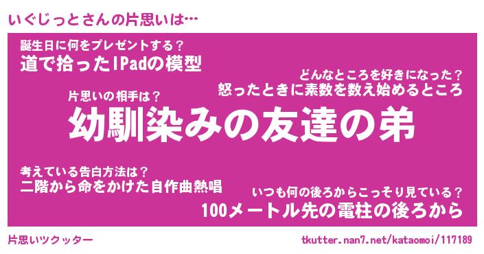 | 男性向けラノベタイトル風あだ名 | 『いぐじっとの憂鬱』 |