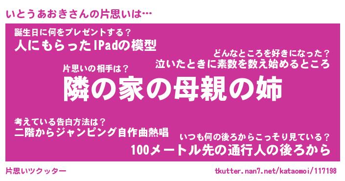 | 意味不明あだ名 | 『ペロリンいとうあおき』 |