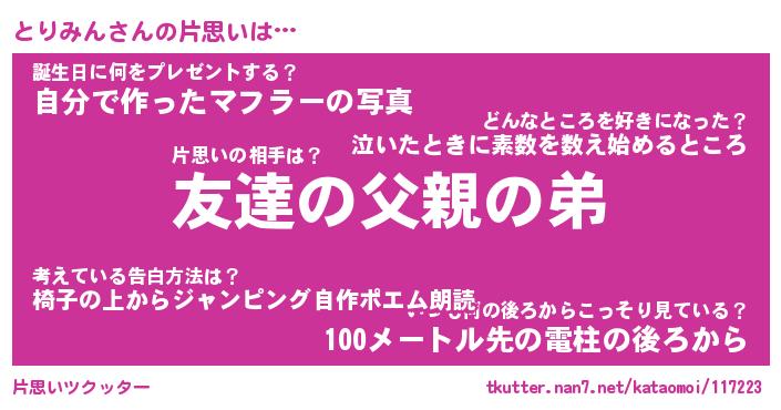 | 胡散臭い通販商品みたいなあだ名 | 『億万長者になれる水晶球…その名も「とりみん」』 |