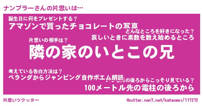| ヘコむあだ名 | 『ナンもー』『酢こんぶ』『ナンお』 |