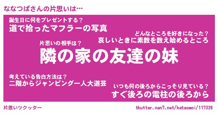 | 意味不明あだ名 | 『ペロリンななつば』『永久保存ななつば』 |