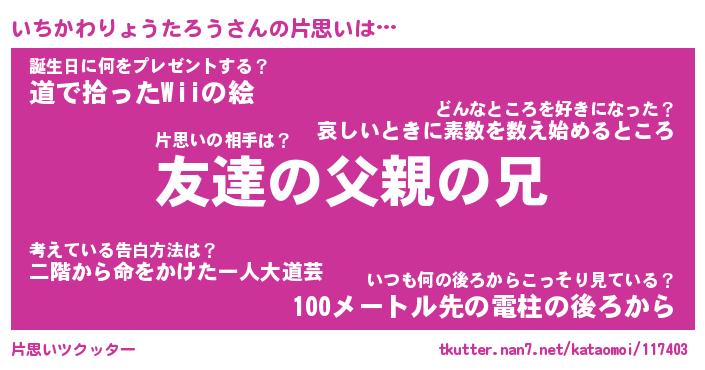| ヒーロー風カッコイイあだ名 | 『スーパーイチカワリョウタロウ』 |