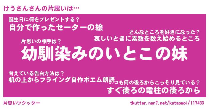 | ファンタジー風あだ名 | 『ケウフェル』『エターナルケウサンー』 |