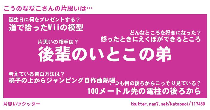 | 意味不明あだ名 | 『ペロリンこうのななこ』 |
