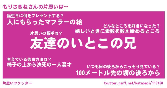 | ヘコむあだ名 | 『もりにゅー』『つくし』『もりお』 |
