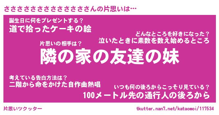 | 男性向けラノベタイトル風あだ名 | 『ささささささささささささの憂鬱』 |