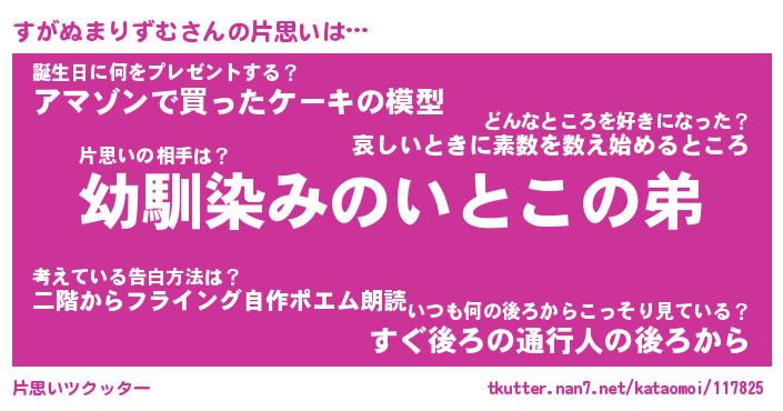 | 女子向けラノベタイトル風あだ名 | 『(仮)すがぬまりずむのやんごとなき事情』 |