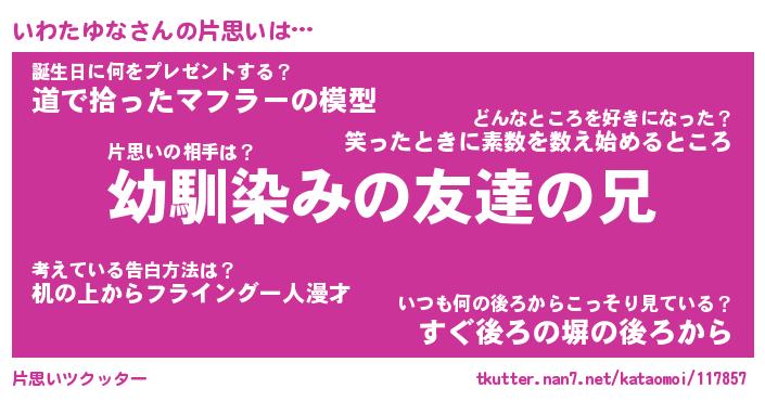 | ヒーロー風カッコイイあだ名 | 『スーパーイワタユナ』『魔戒騎士イワ』 |