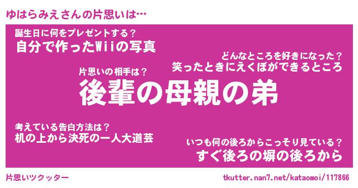 | 胡散臭い通販商品みたいなあだ名 | 『億万長者になれるブレスレット…その名も「ゆはらみえ」』 |