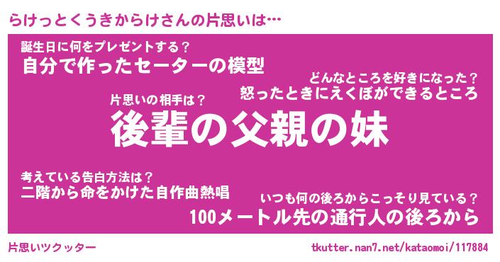 | ヘコむあだ名 | 『らけにゅー』『つくし』 |