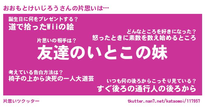 | 胡散臭い通販商品みたいなあだ名 | 『億万長者になれる水晶球…その名も「おおもとけいじろう」』 |