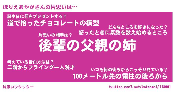 | 胡散臭い通販商品みたいなあだ名 | 『モテモテ間違いなしブレスレット…その名も「ほりえあやか」』 |