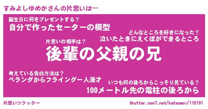 | ヘコむあだ名 | 『すみふぇ~』『牛乳』『すみお』 |