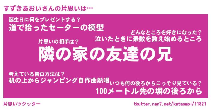 | 男性向けラノベタイトル風あだ名 | 『すずきあおいの憂鬱』 |