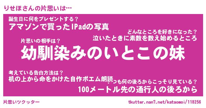 | ヘコむあだ名 | 『りせもー』『牛乳』『りせ太郎』 |