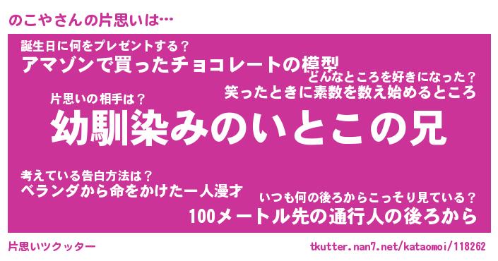 | ヘコむあだ名 | 『のこもー』『なまこ酢』『のこお』 |