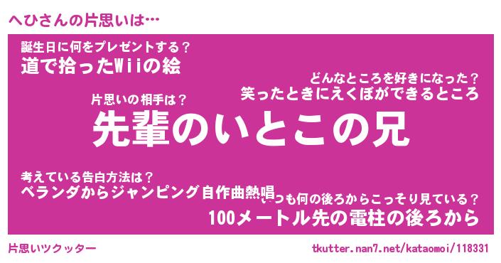 | ヘコむあだ名 | 『へひもー』『酢こんぶ』『へひ(笑)』 |