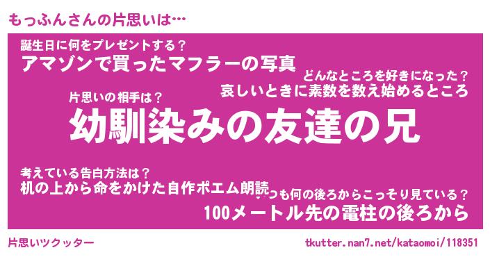 | 意味不明あだ名 | 『ペロリンもっふん』『永久保存もっふん』 |