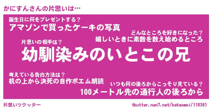 | 男性向けラノベタイトル風あだ名 | 『かにすんの憂鬱』 |