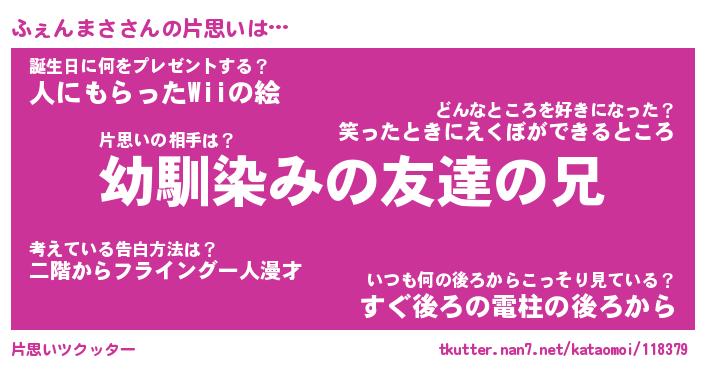 | 伝説のあだ名 | 『伝説のスナイパーふぇんまさ』 |