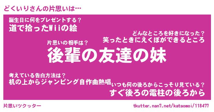 | ヘコむあだ名 | 『どくっふぃ~』『牛乳』『どくお』 |