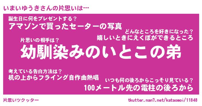 | 恥ずかしいあだ名 | 『プリティーいまいゆうき』『いまっちょ』 |