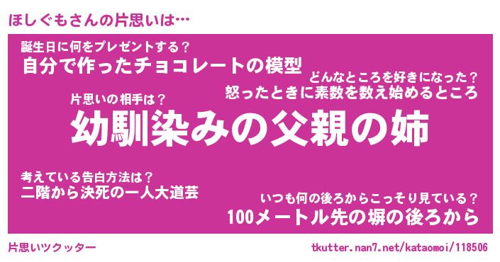 | ヘコむあだ名 | 『ほしにゅー』『つくし』 |