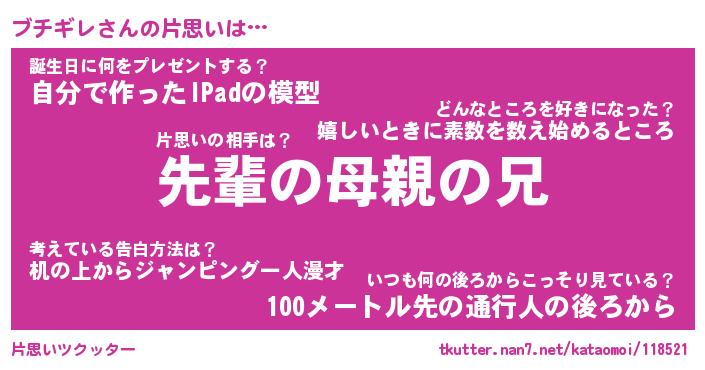 | ファンタジー風あだ名 | 『ブチフェル』『エターナルブチギレー』 |