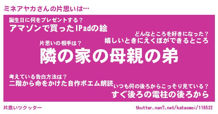 | ヘコむあだ名 | 『ミネにー』『酢こんぶ』『ミネお』 |