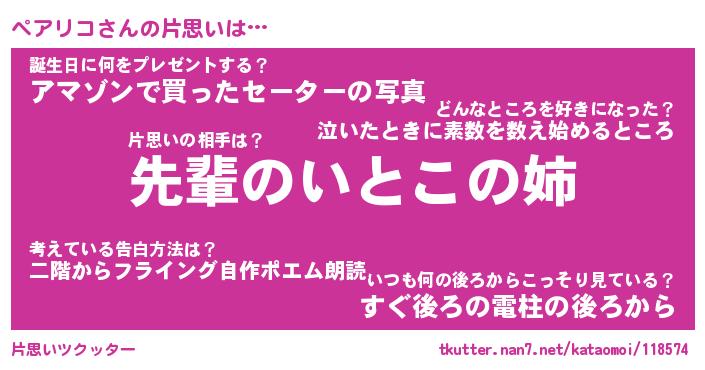 | ヘコむあだ名 | 『ペアにゅー』『なまこ酢』『ペアお』 |