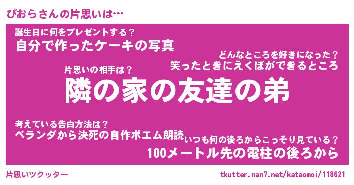 | ヘコむあだ名 | 『ぴおっふぃ~』『つくし』『ぴおを』 |