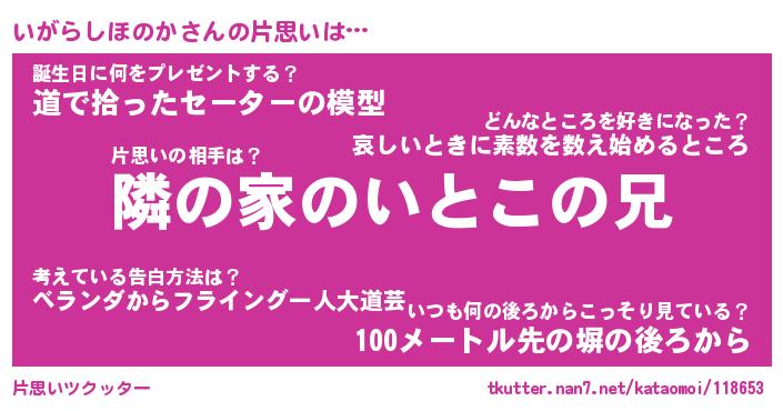 | 胡散臭い通販商品みたいなあだ名 | 『必ず成功する水晶球…その名も「いがらしほのか」』 |